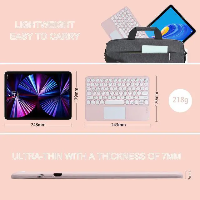 Energy Saving Sleep Mode: When the keyboard doesn't do anything for 15 minutes, it automatically goes to sleep, at which point all LED lightsare turned off to save power. To use this keyboard, just press any key and wait for about 3 seconds, the keyboardwill wake up and reconnect to the Bluetooth device, and it will work normally. How to deal with when the keyboard does not work properly: 1. Make sure your computer's Bluetooth function is enabled. 2. The keyboard must be within 10 metres of your computer. 3. The connection password entered is correct. 4. Please charge the keyboard if the built-in battery of the keyboard is too low. 5. If the keyboard cannot be paired and connected with the tablet or if there is a typing delay or mistyping of lettersduring text input after successful pairing, please