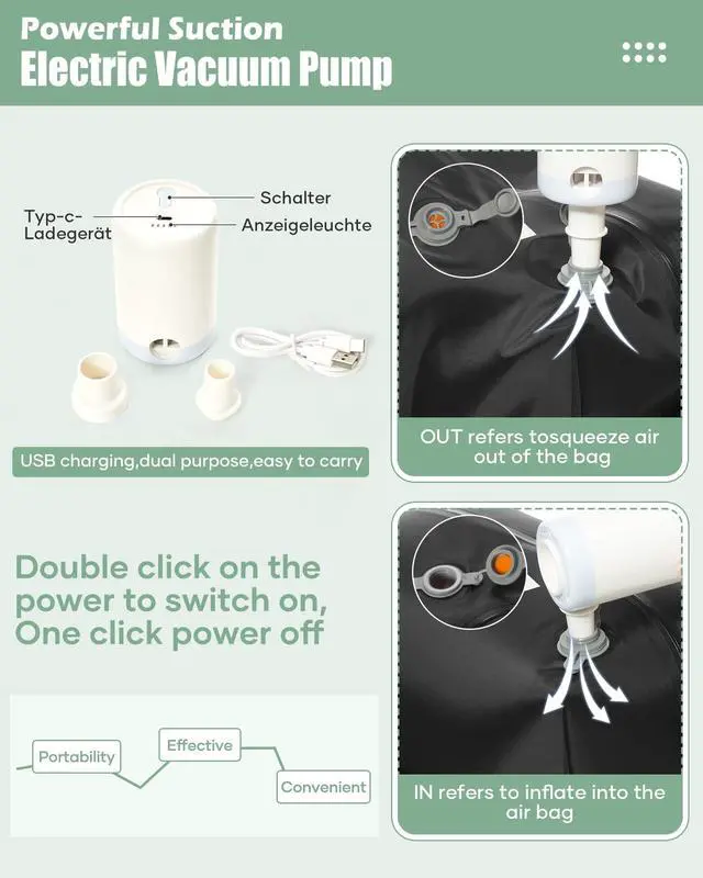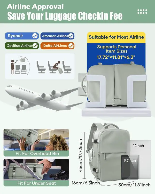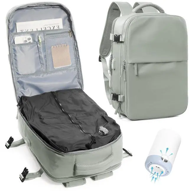 DescriptionThe vacuum travel backpack has a built-in vacuum system that allows you to use our electric vacuum pump to inflate or compress clothing and other items, improving space utilization in your luggage. Ideal for flights, short trips or everyday use. This travel backpack is carefully designed with multiple compartments and pockets to organize your belongings efficiently. The main compartment easily holds 10-15 pieces of clothing, perfect for short and long trips. A wet pocket for separate storage of wet items; the computer compartment can hold up to a 15.6 -inch laptop;.
