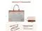 Dimensions: 16.5"L x 12" H x 6" D. This work bag for women includes an independent compartment for laptops and tablets, a spacious main pocket for documents, books, and gadgets, two small square pockets, two pen slots, and a side pocket for a power bank and water bottle. ^^ Elegant Laptop Tote Bag for