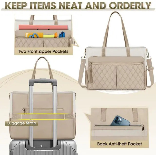 LONG-LASTING & STURDY LAPTOP BAG: Our teacher tote bag measure 16.545. 5112.20 in, and weighs only 1.66 lb. Crafted with premium Oxford fabric and featuring smooth zippers, reinforced stitching and exquisite craftsmanship, lightweight laptop bag for women is not only tear-resistantbut also durable and waterproof. High-quality work bags for women is dedicated to providing a comfortable and reliable user experience. ^^