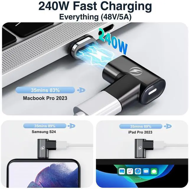 Max 240W Fast Charging AdapterThis Magnetic USB C adapter supports 240W(48V/5A) max power output for high-speed charging, enhancing your charging experience at work or entertainment. (Note: Actual charging speed depends on your cable/charger)