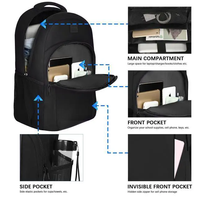 • Massive Storage and Pockets: Laptop travel backpack with a spacious main compartment, easily accommodates a laptop of 15.6 inches or less, while providing plenty of storage space for your files, tablets, books and other electronic devices. The front compartment has many pockets, pen pockets and keychains to keep your projects organized and easier to find, allowing you to keep various gadgets in order, such as power cords, headphones, portable hard drives, etc.