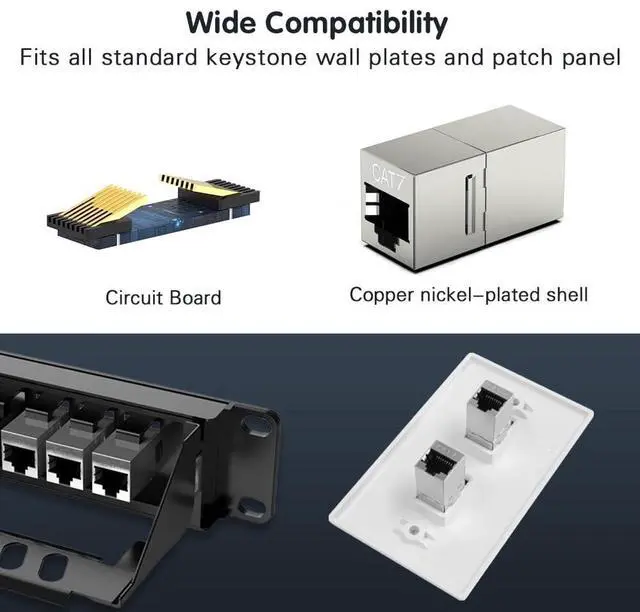 Seamless Connection: Fully shielded 180 coupler connects two Cat7 cables for efficient patching. Perfect for standard data wall plates and blank patch panels, ensuring stable and reliable network connections in both residential and commercial installations ^^