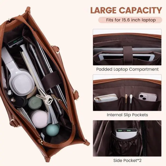 Women: The Computer Handbag Shoulder Bag interior is thoughtfully designed with multiple compartments. The laptop pursue built-in padded laptop compartment fits up to a 15.6" laptop, featuring a thick protective foam pad and a secure velcro strap to ensure optimal protection for your device. ^^ Excellent Work Tote Bag for