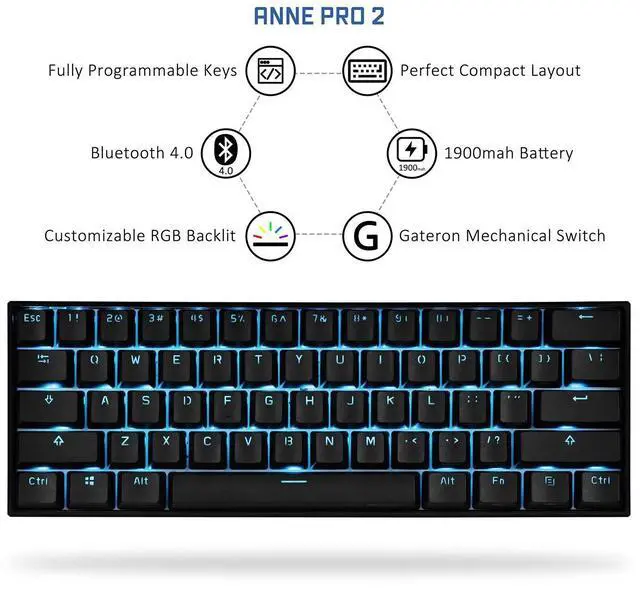 Bluetooth system requirement: Bluetooth LE 5.0 receiver/Linux, Windows8/10, Android 4.4 and above / IOS 7.0 and above / Mac OS 10.10 and above. (Check the compatibility before purchasing) ^^ Prolonged Wireless usage. It utilizes 1900mah battery which is up to for 8 hours wireless usage under regular circumstance, which means a few days life cycle on a single charge. There is also built-in on/off switch to conserve battery power ^^ Arrow Keys on keyboard. Probably the first 60% keyboard with arrow keys back. Tap key functionality enables keys to behave differently when tapped or held. By default, Right shift, Fn1, Fn2, and Right control behave as arrow keys when tapped ^^
