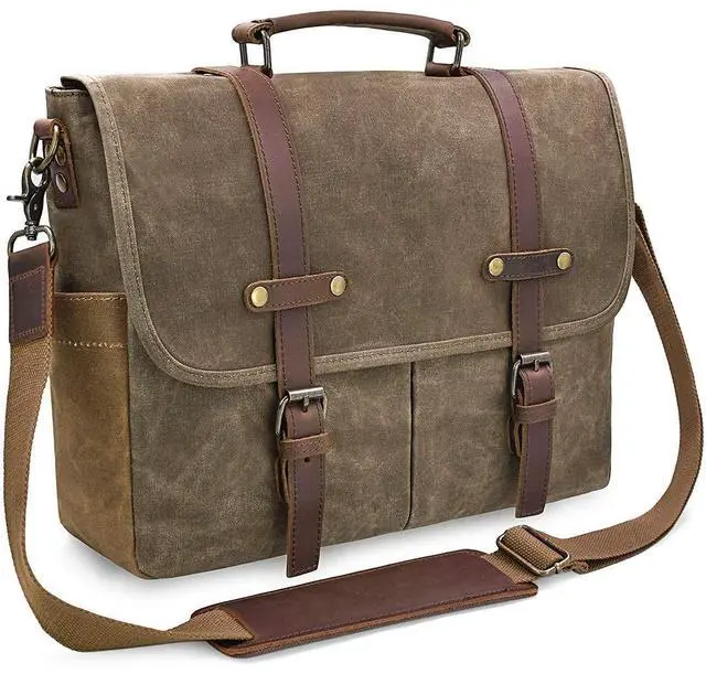 REMOVABLE & ADJUSTABLE STRAP: Shoulder strap of canvas messenger bag is detachable and can be adjusted at the most suitable length. Padded handle and strap are also helpful to ease your fatigue. ^^ CONVENIENT MAGNETIC SNAP & PADDED LAPTOP SLEEVE: Laptop messneger bag is double secured by magnetic snaps and zippers. Inner padded laptop sleeve fits for 15.6 inch laptop and cohesive seal ensure it to be steady.