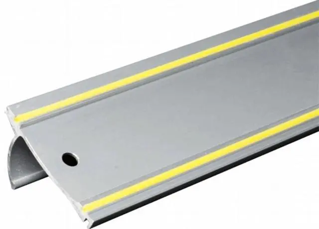 Keencut IS48 Model 60004 Precision 48" Safety Straight Edge, Lightweight Anodized Aluminum Frame, Full-length Imperial Scale, Two Full-length Silicone Grip Cords Protect and Clamp Your MaterialsThe Keencut Precision Safety Straight Edge is a durable and sleek-looking straight edge that offers accuracy when marking, drawing, pen-lining, scoring, and cutting. It features an embedded steel edge to resist wear and protect the straight edge and the tools being used with it. Two full-length grip cords are added to keep it steady and protect sensitive work surfaces. Equipped with a full-length curved finger guard, the straight edge is surely safe to use.