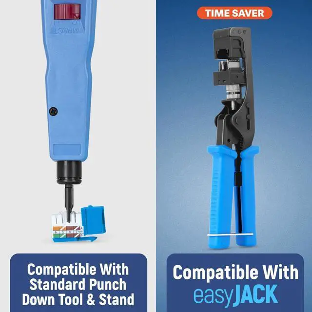 Compatibility - compatible with our 90 degree angled speed termination tool - easyJACK (B094WB91H3). These cat 6 jacks keystone rj45 can also work in conjunction with a standard punch down tool and punch down stand for convenience. ^^ Slim Profile Design - Can be used with a Keystone patch panel, wall plate, or surface mount box with standard or slim keystone blank openings. compatible with Leviton QuickPort System and slim Decora style wall plates ^^ High Performance - Everest keystone cat6 jack is Suitable for 1 Gigabit (10/100/1000 Mb/s) up to 328 feet and 10 Gigabit up to 165 feet.