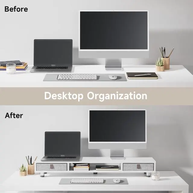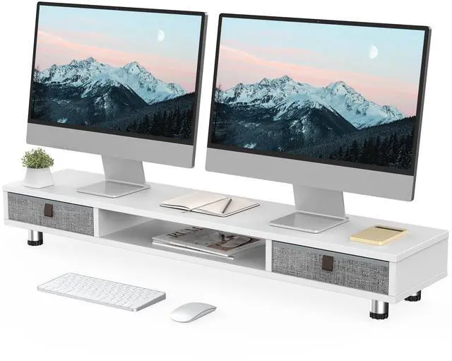 Drawers: Dual monitor stand includes a large 10.9 inch practical slide-out drawer, providing a private space for storing your desktop items, making the space neater and more spacious. ^^ Monitor Stands for 2-3
