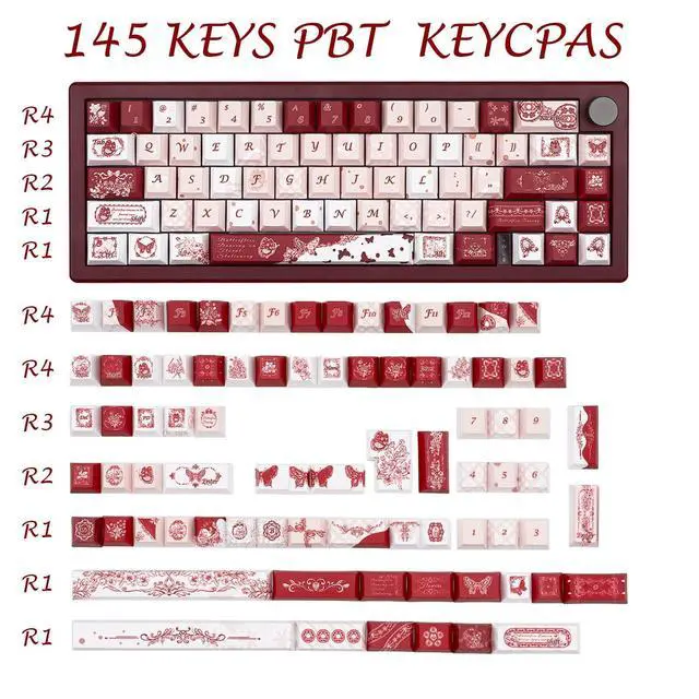 Only Keycap Set: This comprehensive set includes 145 keys covering various sizes suitable for most 61/64/87/104/108 mechanical keyboards including Cherry MX Gateron switches providing full customization options ^^