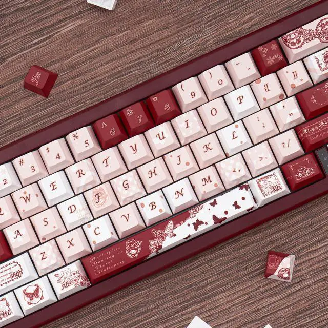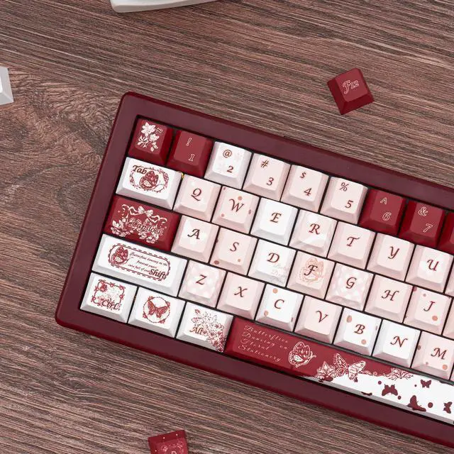 Vintage Design: Featuring a retro butterfly theme with white red and pink color schemes this set brings fresh colors and beautiful designs enhancing the aesthetics of your keyboard for both work and play ^^ Cherry