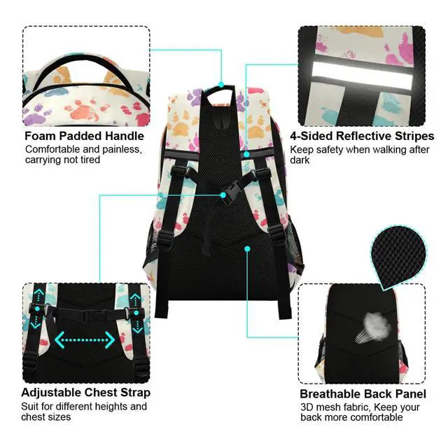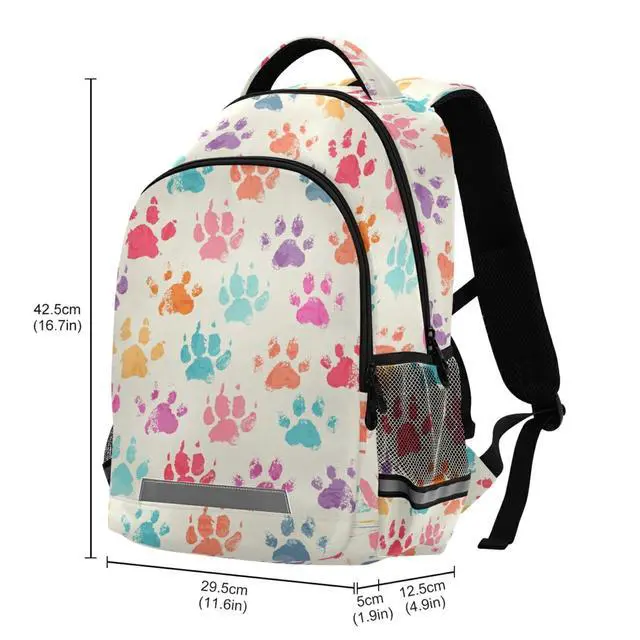 ALAZA Colorful Dog Paw Print Vinatge Backpacks Travel Laptop Daypack School Book Bag for Men Women Teens Kids