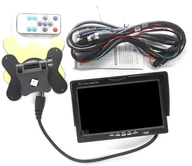 menu: Full image, / 2 images /4 images adjustableAutomatic switching with triggerSuitable for back view/ side cameras[16: 9 ] wide screen displayPackage included: 1 X 7" Monitor1 X Remote Control1 X AV Cable1 X Sun Shade1 X Mounting Base and 3M Sticker1 X User Manual