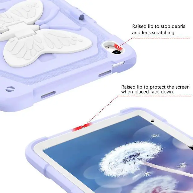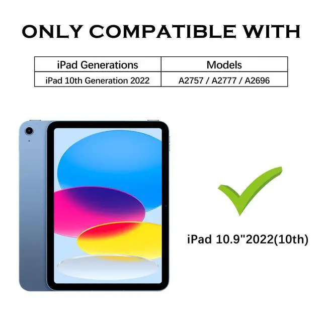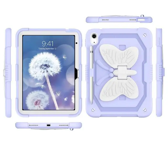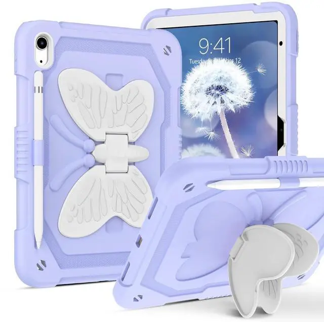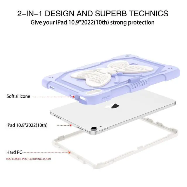 Inch (2022) (Model number: A2696/A2757/A2777), not compatible with other versions. No screen protector. Please confirm your iPad model on the bottom of the back of ipad. ^^ Butterfly Wings KickstandSturdy built-in butterfly kickstand, when you want to typing, gaming or watching video not have to hold the iPad at the same time. Free your hands with this 10th gen iPad case. ^^ Pencil Holder FeatureBuilt-in Apple Pencil holder, can hold your pencil in place tightly (Pencil is Not included). ^^ Precise Cutouts in iPad 10 gen caseThe butterfly stand iPad 10th generation case with precise cutouts ensures all ports like Touch ID, camera, speaker, charging port, which is easy to access all buttons. ^^ Durable MaterialTwo Layer design combines hybrid shockproof material and silicone outer layer with a hard PC cover to achieve the strongest fall protection for iPad. It is the best gift for your iPad 10th Generation.