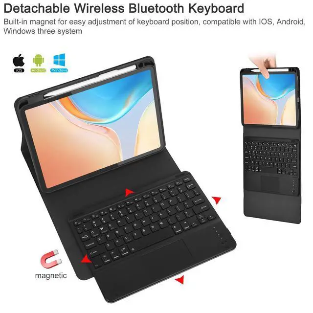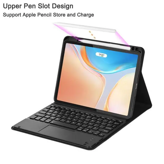 Note: Please upgrade your tablet software to iPad OS 13.4 to fully access to the touchpad function. ^^ Magnetically Detachable KeyboardThis iPad Pro 11inch (M4) case with keyboard is magnetic so it can be easily repositioned or removed from the case. The case has 3 grooves to adjust the viewing angle as you like, make your ipad stand steadily. You can adjust to the optimal angle for studying, working, or entertaining. ^^ Convenient Pencil HolderThe iPad Pro 11inch M4 keyboard case designed with pencil holder and pen slot on top to place and take the pen easier, and supports wireless charging for Apple Pen.