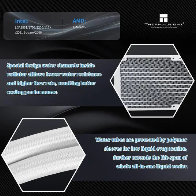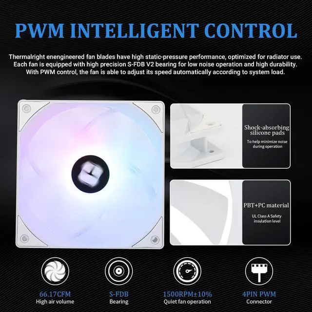 interface: 5V/3-pin ARGB, airflow: 66.17CFM (MAX), with PWM and ARGB function, can automatically adjust the speed according to the CPU temperature. To provide strong airflow and lower noise, the color of the ARGB light can be adjusted manually. With PWM function, the speed can be automatically adjusted according to the temperature of the CPU, providing strong airflow. ^^ Convenient InstallationAIO Cooler Support, AMD and Intel Slot Supported, AMD