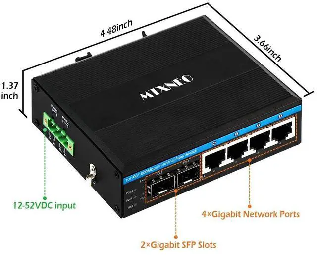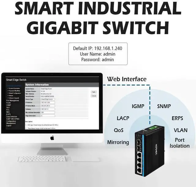 Working temperature is -40 75C(-40 to 176 ), 6KV lightning protection. ^^ VARIOUS INSTALLATION WAYS - This 4port managed industrial Gigabit Ethernet switch supports different installation ways. The main way is Din-rail mounted (BRACKET ARE NOT INCLUDED). ^^ WHAT WE PROVIDE - 1pc 4port managed industrial Gigabit Ethernet switch (without power adapter). Replacement within 1 year and 5 years repairing and lifetime technical support.