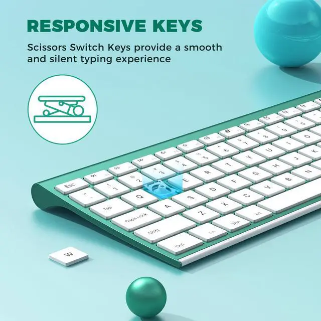 • COMPACT AND SLIM: Ultra slim (5.5mm) keyboard looks more stylish and elegant. High-End Scissor Switch design provides a better tactile response and comfortable and whisper quiet typing experience