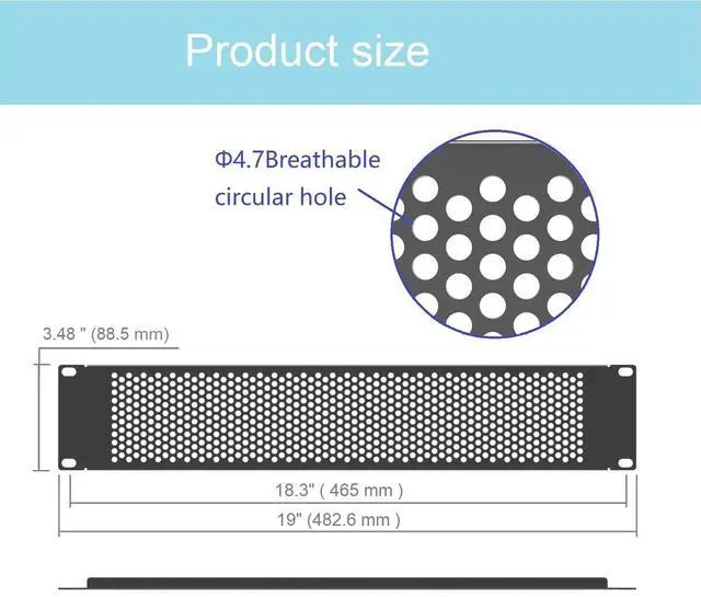 SetProduct Size: Wide 19 inch, 2U Space; Fits in any standard 19 rack mount, server cabinet, shelf and more. Keeping your racks organized, protected from dust. Made of high quality cold rolled steel.
