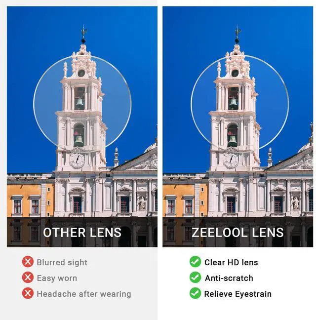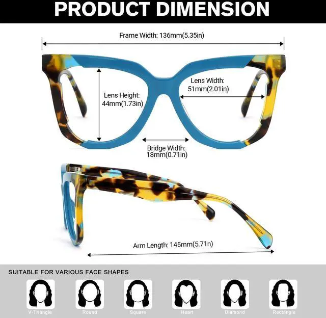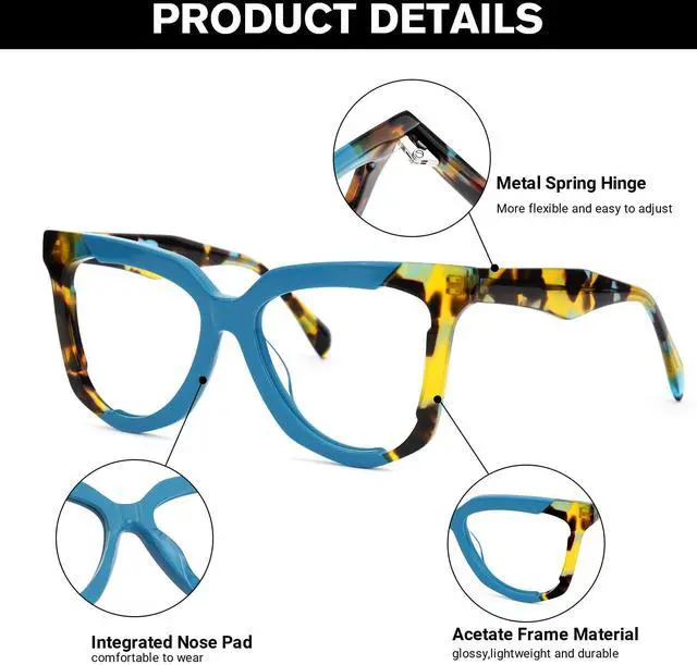 ^^ Appearance & Wide ApplicationThe glasses frame is come with a fashion cat eye shape, it can go with various face shapes and hairstyles; The shape of the frame allows you to stay stylish at work or in daily life.