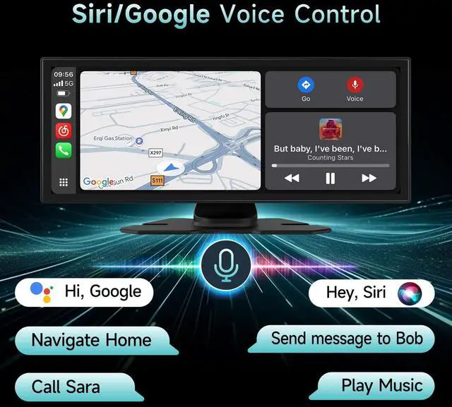 With advanced voice control, you can stay hands-free and focused on the road ^^ Upgraded Bluetooth Smart ChipAdopts advanced Bluetooth module and Bluetooth antenna for higher transmission efficiency. Powerful upgraded smart chip for faster connection and lower signal delay. Built-in ultra-clear microphone for clearer calls and more accurate voice control that won't distract your driving attention and ensure safer driving ^^ Dash Cam Front and RearThis a-pple carplay screen for car is equipped with 4K HD dash cam and 1080P rear camera, support HD night vision function, split screen display, and it can record at the same time, record your driving process comprehensively and clearly.