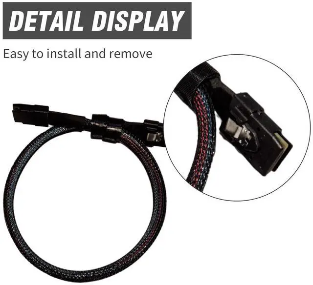 Description: Mini SAS SFF-8087 (36pin) data cable directly connects a RAID or PCI Express SAS controller to the SAS backplane of a hard drive bay in a server or workstation, Right Angle Mini SAS SFF-8087 Wire Cable is a high-speed data storage interface designed for high-throughput and fast data accessSpecification: Product