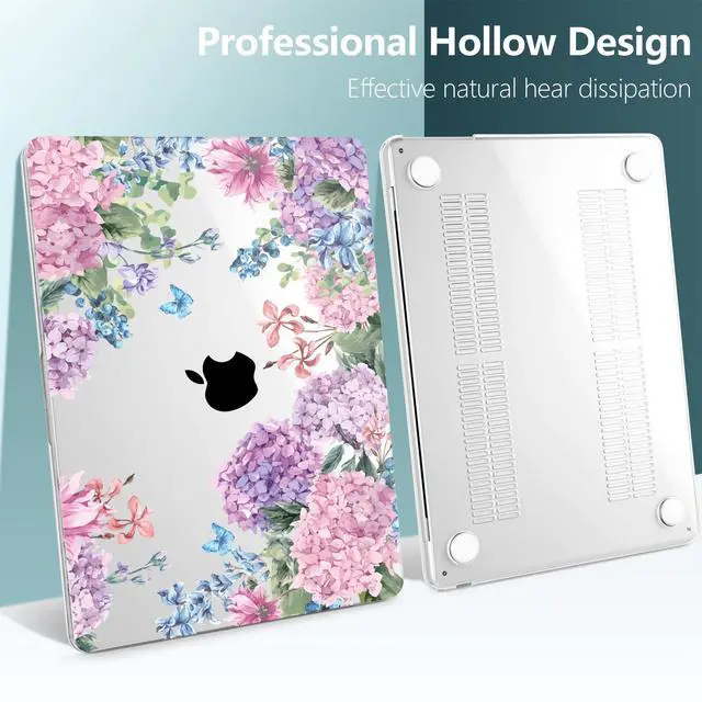 TWOLSKOO for M4 MacBook Air 13.6 inch Case 2025-2022 Release M4 A3240 M3 A3113 M2 A2681, Plastic Hard Shell & Screen Protector & Keyboard Cover & Trackpad Film, Colorful Hydrangea