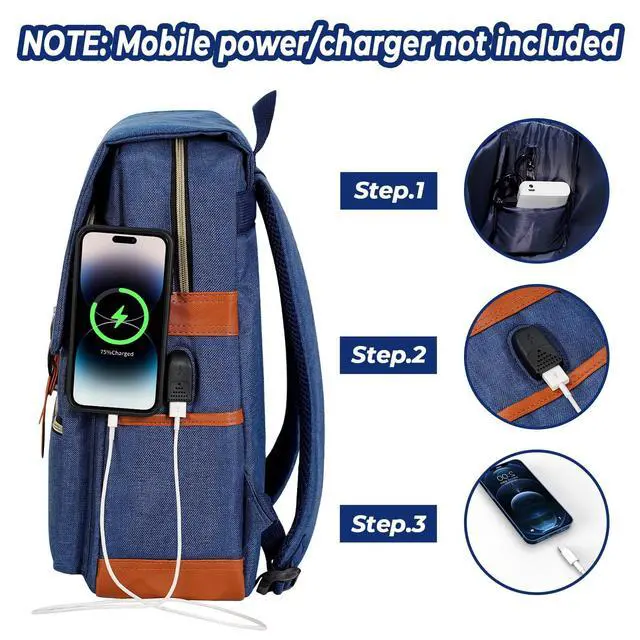 Convenient & Charge On-The-Go: Stay powered on the move! Ronyes vintage laptop backpack features an external USB charging port and a built-in charging cable. Insert your mobile power into the dedicated pocket, connect it to the port, and charge your devices on the go. Perfect for long trips, outdoor activities, or