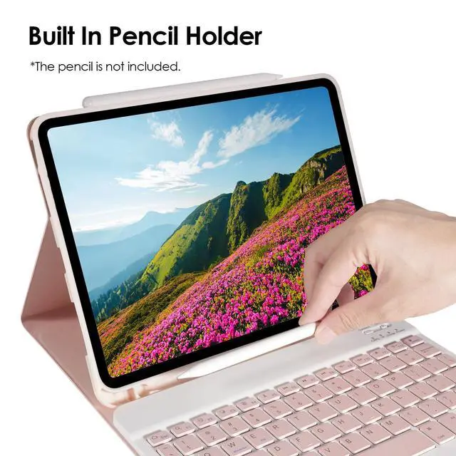 NOTE: It's NOT compatible with iPad 10th Generation 10.9 inch. ^^ Detachable Bluetooth KeyboardMagnetically detachable ipad keyboard is designed for smooth and fast writing, ergonomic keys layout with handy volume and brightness contro. Comfortable key buttons mute in typing, available for shortcuts setting, offers you quick operation with iPad for work and entertainment. ^^ The keyboard case with Pencil HolderThe premium composition leather exterior and soft, non-slip interior protect your iPad from accidental drops and scratches. The built-in Pencil holder allows you to take your Pencil wherever you want.