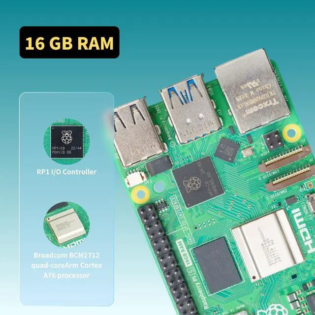 Performance Kit: Featuring a cutting-edge 16GB LPDDR4X RAM, this iRasptek Pi 5 kit offers multitasking capabilities. Ideal for projects such as AI applications, virtualization, software development, and 4K media playback. The Cortex-A76 quad-core processor with 2.4GH z clock speed ensures smooth and efficient operation. ^^ Pre-installed with 64-bit the latest version