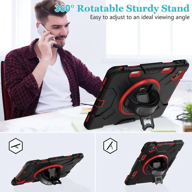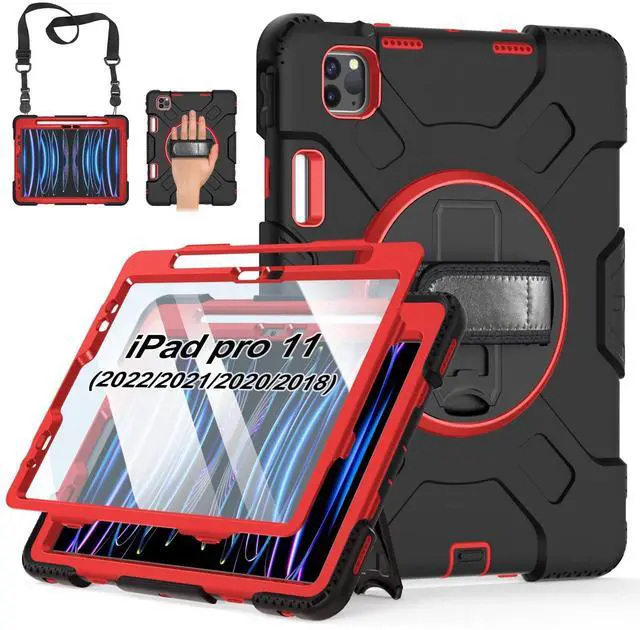 ROTATING/MULTI-ANGLE STAND: The iPad Pro 11 case 2022/2021/2020/2018 built-in 360-degree swivel foldable sturdy kickstand. It can support multi-angle (Vertical, Horizontal). Ideal for watching videos, conferences, typing and drawing, let your hands-free. This sturdy kickstand can be folded when you don't need it. ^^ ADJUSTABLE HAND STRAP +