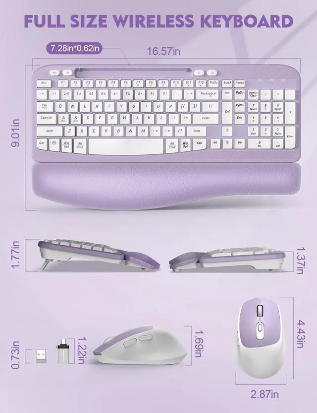 WAVE-SHAPED KEYS DESIGN: The wireless keyboard features ergonomic design with wave-shaped keys layout that arches in the center, let your hands in a more natural posture, offering a unique typing experience that promotes comfort and efficiency ^^