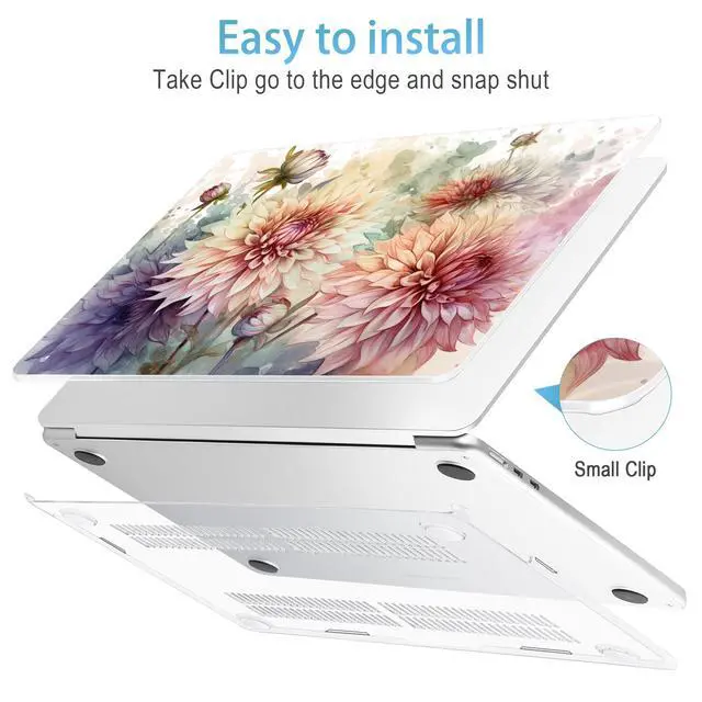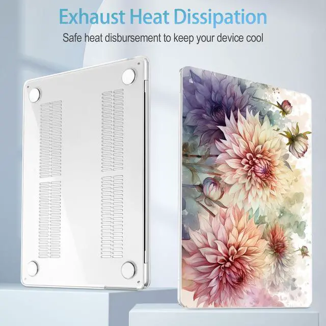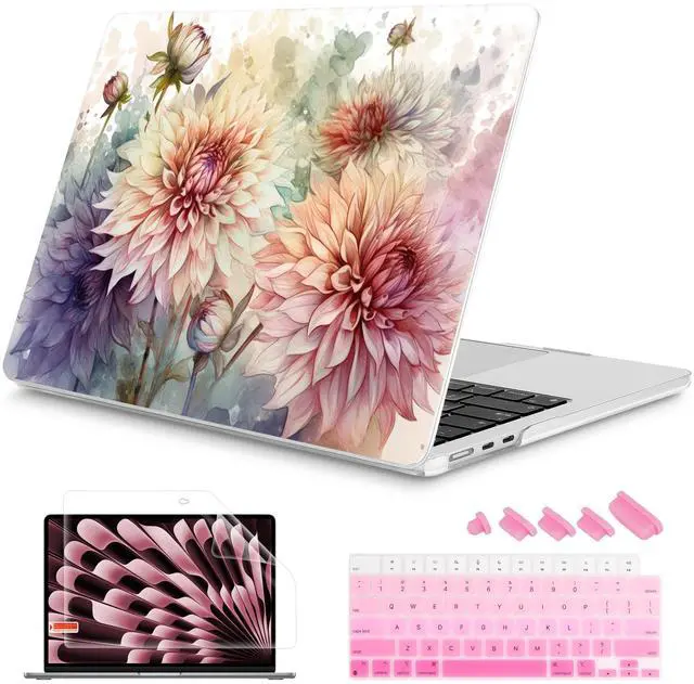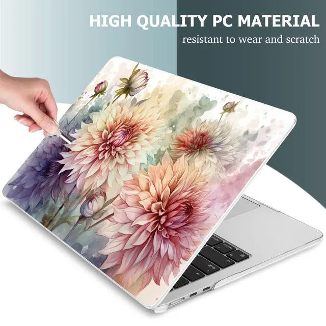 Mektron Designed for 2025/2024/2023 MacBook Air 15 INCH M4 A3241 /M3 A3114 /M2 A2941 Case, Printed Plastic Hard Shell Cover with 15.3" Liquid Retina Display Touch ID, Watercolor Dahlias