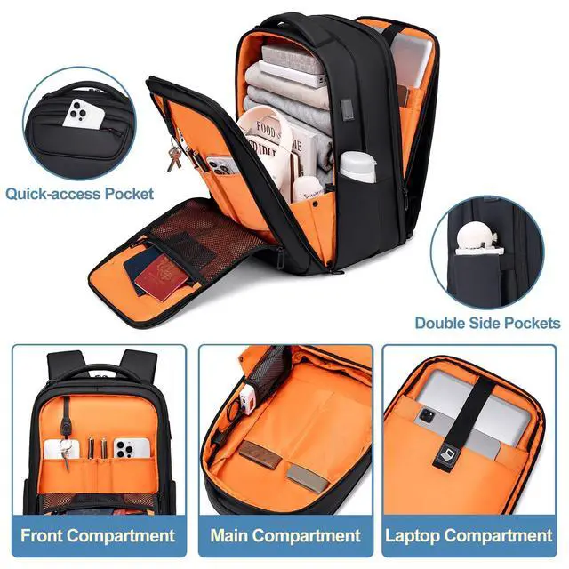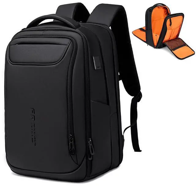 EXPANDABLE & ORGANIZED Accommodates a 15.6 laptop with 3 compartments for office essentials and daily items. Expands from 7.8" to 11" thick switch from business backpack to weekend backpack in seconds ^^ ALL-DAY CARRY COMFORT EVA airflow back panel reduces sweat. Padded shoulder straps and adjustable chest strap stabilize loads on city walks/international travel ^^ RUGGED & STYLISH FENRUIEN professional backpack is crafted from 1800D Oxford fabric with metal zippers, survives bumps and knocks in crowded subways, airport luggage carousels, or outdoor adventures ^^ SEAMLESS AIRPORT EXPERIENC 180 lay-flat design speeds up TSA security checks, while the luggage strap allows personal item backpack attachment to your suitcases for stress-free airport navigation ^^ SMART & SECURITY External Type-C & USB-A ports let you charge your phone without unzipping the tech backpack.