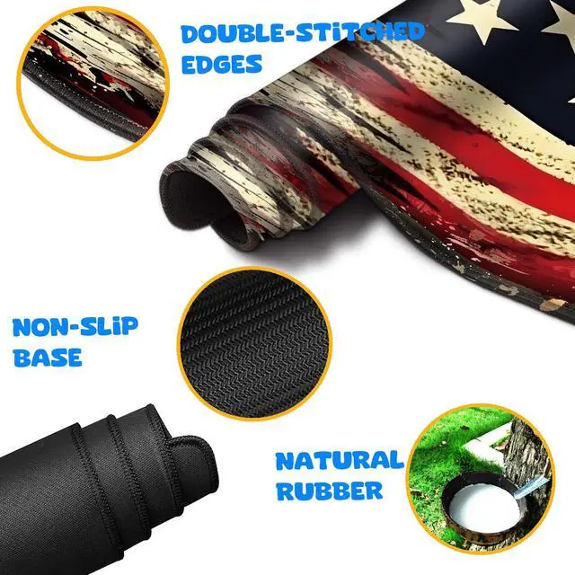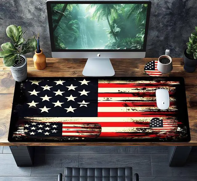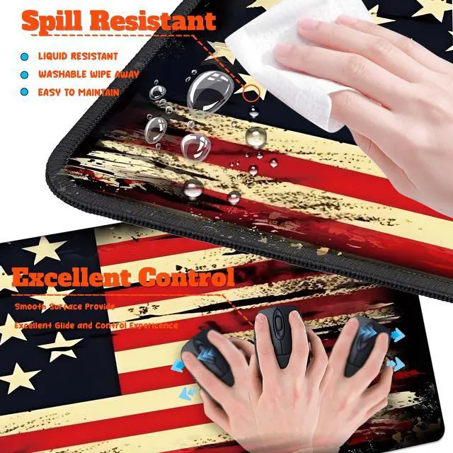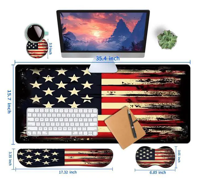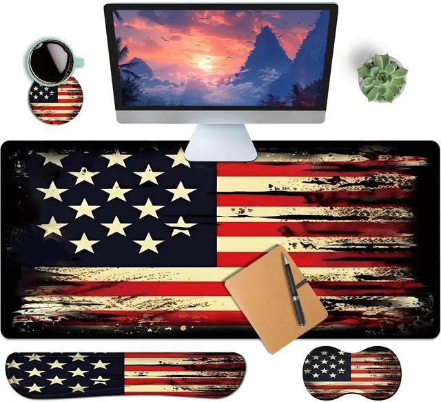 HaoSiTeck 4-Piece Extended Large Mouse Pad Set for Women Men with Retro Flag Design Includes 35.4 x 15.7 XXL Large Mouse Pad Keyboard Wrist Rest Mouse Wrist Support and Coaster for Office Home