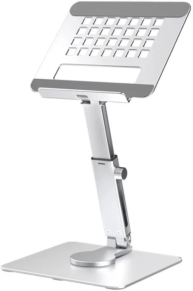 Height Adjustable: This tablet stand is ergonomically designed to keep you in a comfortable and healthy position. Our ipad stand not only allows you to flexibly adjust the angle of the monitor's folding and the height of the support arm, the base can also rotate 360 degrees, thus greatly expanding your workspace and increasing viewing comfort.