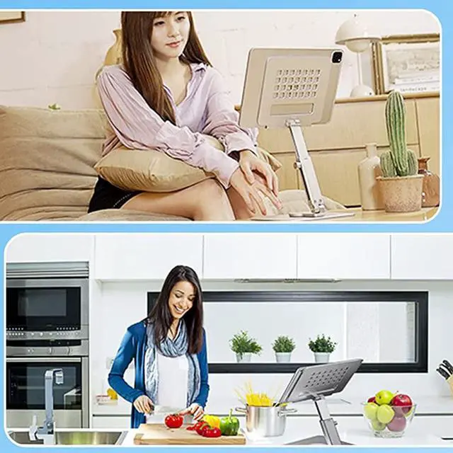 ^^ Excellent Compatibilit: The adjustable tablet stand is compatible with phones and tablets with 4.7" - 13.5" screens, iPad Pro 9.7 ''/ 10.2 ''/ 12.9 '', iPad series, iPad Air series, iPad Mini series, Microsoft Surface Pro series, Samsung Galaxy Tab series and other 4.7 '' ~135'' phones and tablets. ^^ Multiple UsesThis tablet stand is not only great for work and business, it's also great for reading, gaming, watching videos or cooking at home. It provides stability and any viewing angle for your tablet when you're cooking with online recipes on the kitchen counter or catching up on TV in the living room. ^^ Reserved Charging Hole and