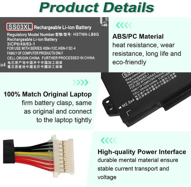 Compatible Battery model: Replacement Battery for HP SS03XL SS03 SS03050XL SS03050XL-PL 933321-855 933321-852 932823-171 932823-1C1 932823-271 932823-2B1 932823-2C1 932823-421 HSN-112C HSN-113C-4 HSTNN-1B8C HSTNN-DB8J HSTNN-IB8C HSTNN-LB8G ^^