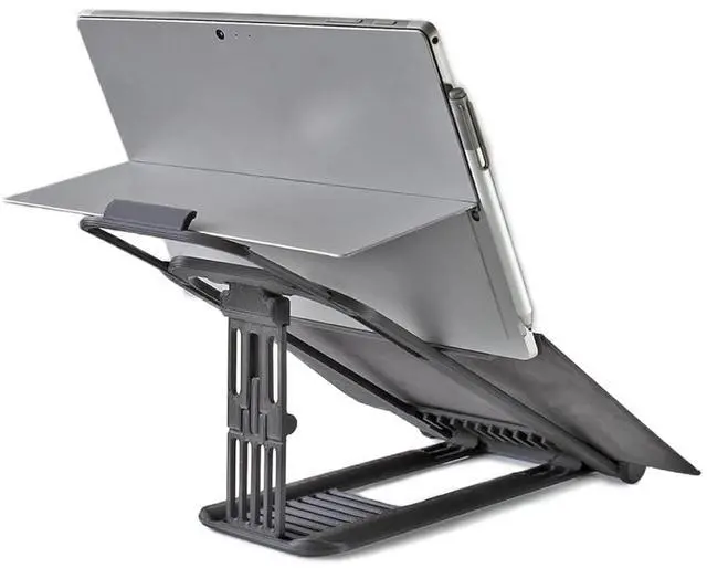Everything was designed for more traditional laptops. So we designed and manufactured the ideal stand to meet our needs, refining it over dozens of design iterations. Even with a pro desktop set-up with remote monitors and a docking station this must have Surface Pro accessory will lift your game. ADJUSTABLE - Not everyone needs or wants the same screen height, so we've make the Surface Pro Laptop Stand ergonomic and easily adjustable in seconds to suit the space you are in with 16 adjustable positions and a variety of screen angles. COMPACT - It folds down neatly into the same space as your Surface, making it ideally suited for carrying with your Surface.