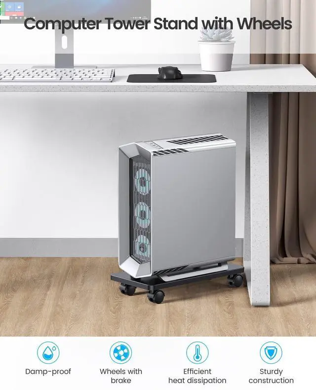 ^^ Simple and Practical Design This CPU stand is designed to support and lift most desktop/tower computers, save desktop space, prevent moisture and leakage, increase airflow and allow the computer tower to breathe freely. ^^ Easy to assembleThis computer case stand can be easily assembled in a few minutes. It is not only a computer stand, but can also be used to store potted plants.