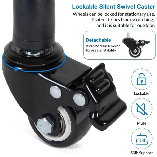 Removable Wheel: 3 silent swivel wheels make rolling and maneuvering this projector stand a breeze. Each wheel has a separate brake, ready to secure your setup in place ^^