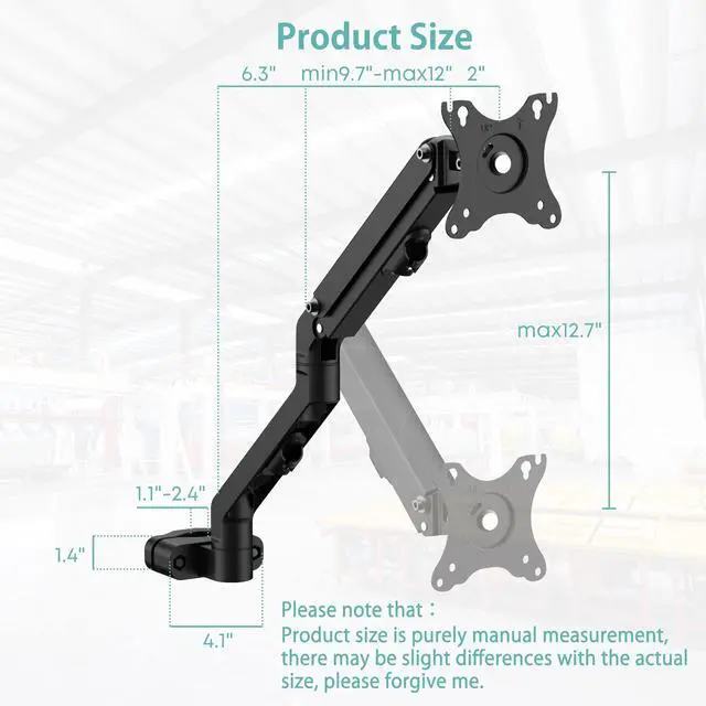 Adaptation Information: This monitor pole mount accommodates screens from 17" to 27" with a weight capacity of 4.41 - 15.43 lbs, and is compatible with VESA sizes of 75x75 and 100x100 mm ^^