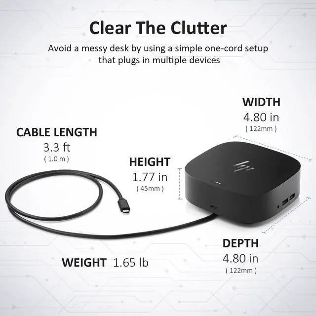[Efficient Workspace] Improve productivity by connecting a laptop to multiple devices (up to three monitors) using a single cable. The HP G5 docking station keeps you away from cluttered desktops, providing you with a more comfortable and simpler workspace.