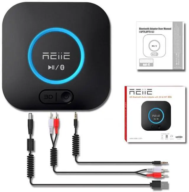 3D surround: the latest Bluetooth 4.2 technology allows for hi-fi transmission, guaranteeing you the best quality audio. It also has support for 3D audio, which gives you the ultimate surround sound experience. Simply click on the 3D button after connection to switch the feature on/off. This wireless stereo Adapter seamlessly connects with them, allowing you to easily control your music using voice commands. With this, you can truly enjoy a wireless experience. micro USB charging cable 35mm male to male audio adapter 3.5 mm audio cable; and user manual.