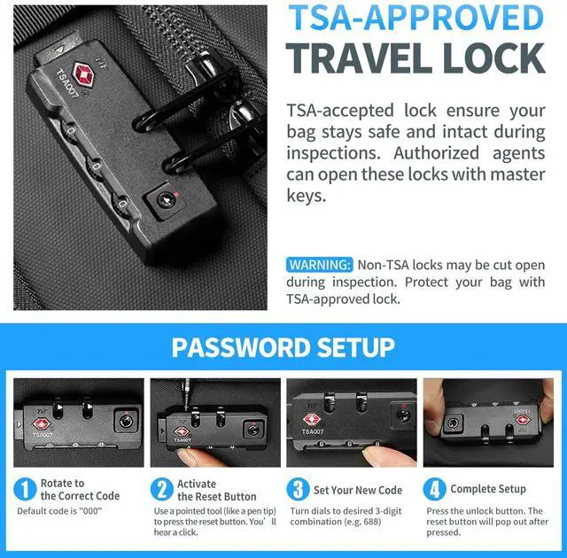 Secure Travel Pack: With a combination lock for laptops and a discreet quick-access pocket, this backpack ensures secure and convenient storage for your valuables ^^