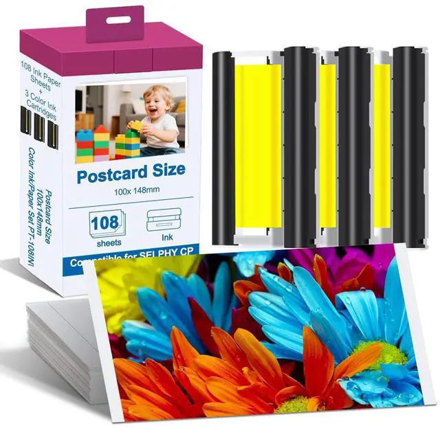Compatible With: KP108IN Color Ink Cartridges Compatible for Canon Selphy Series CP1300 CP1200 CP1000 CP1500 CP910 CP900 CP820 CP810 CP800 CP790 CP780 CP770 CP760 CP740 CP730 CP720 CP710 CP600 CP510 CP400 CP330 CP300 CP220 CP200 CP100 Wireless Compact Photo Printers. ^^ Selphy CP1500 Ink and Paper