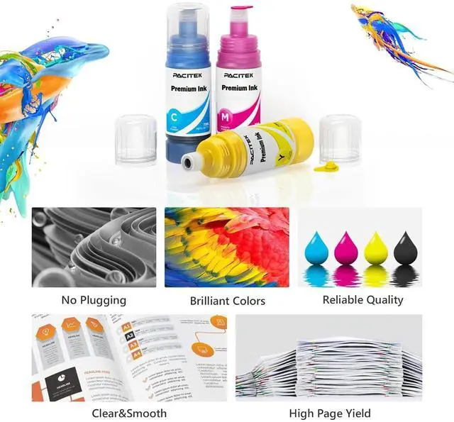 Compatible Printers: Replacement for epson 542 Ink Refill Bottles work with Ecotank Pro ET-5850 ET-5800 ET-5880 ET-16600 ET-16650 ST-C8000 printers ^^ Replacement for 542 ink refill bottles feature a premium formula rigorously tested for quality. Easy to use, with bright, fade-resistant colors, fast drying, smooth printing, and no clogging. Ideal for a variety of paper types, including high-gloss inkjet photo stickers ^^ Notes on Replacement for 542