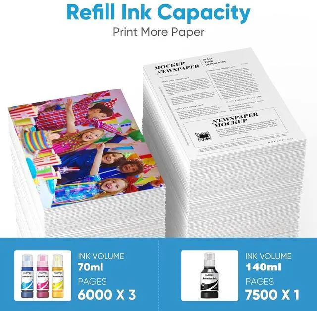 High Page Yield: Up to 9, 000 pages per Replacement for 542 black ink refill bottle, and 7, 500 pages per Replacement for 542 color ink refill bottle (at 5% coverage on A4 paper) ^^