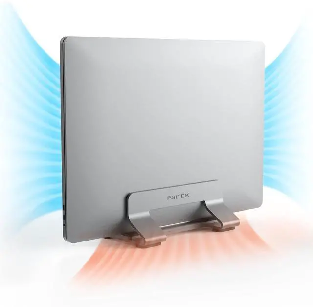 Space-Saving and Organized: Store your laptop or MacBook vertically with the Psitek Aluminum Vertical Laptop Stand Dock Holder to free up desk space and keep your workspace organized.