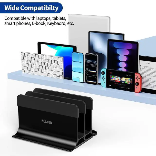 ^^ Wide Compatibility: This vertial laptop holder for desk is compatible with various devices, MacBook 12 / 13, MacBook Air 13, MacBook Pro 13 / 15 / 2018 / 2017 / 2016, Lenovo ThinkPad, Dell, HP, ASUS, Chromebook, and other 10-17" Laptops, iPad, tablet, e-Book, Portable keybaord, smart phones, etc.